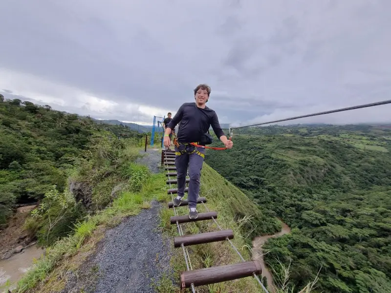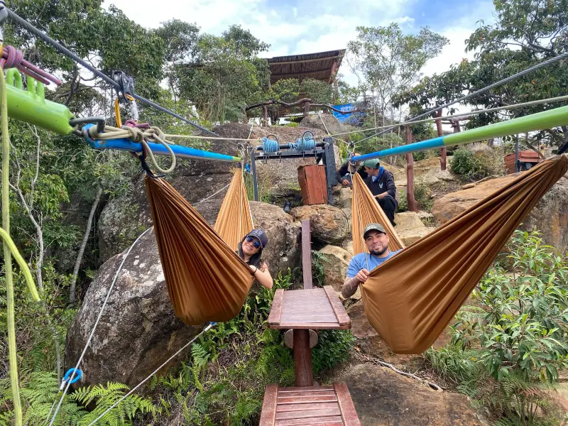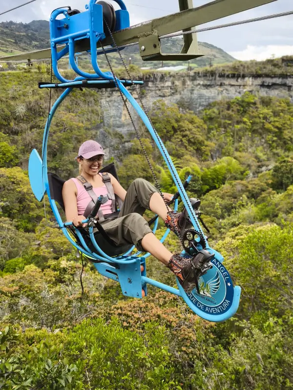 Pon a prueba tus límites con 12 desafíos de Naturaleza Extrema: puentes colgantes sobre la quebrada, Malla Catamarán a 200 metros sobre el río, Péndulo al Vacío, el Puente de Cristal sobre el Paso del Ángel, las alas más altas de Colombia y Canopy de 230 metros.